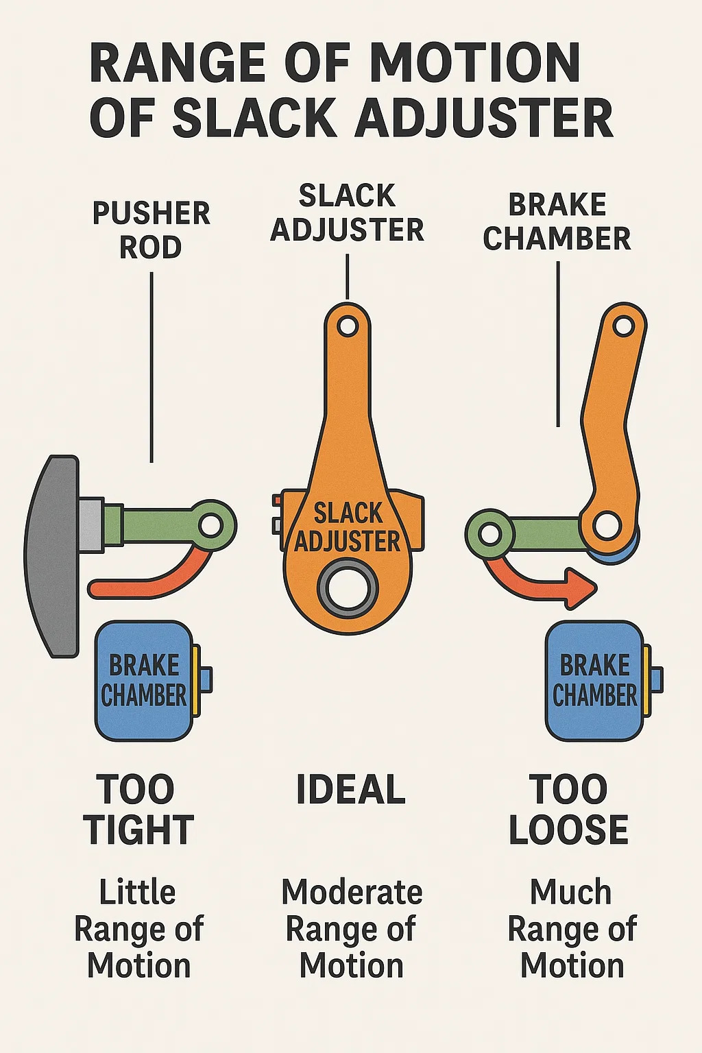 „Raza de mișcare” sau, mai profesionist, cursa frânei, se referă la distanța pe care o mișcă dispozitivul de reglare a slăbiciunii atunci când trage tija de împingere în timpul activării sistemului de frânare cu aer.