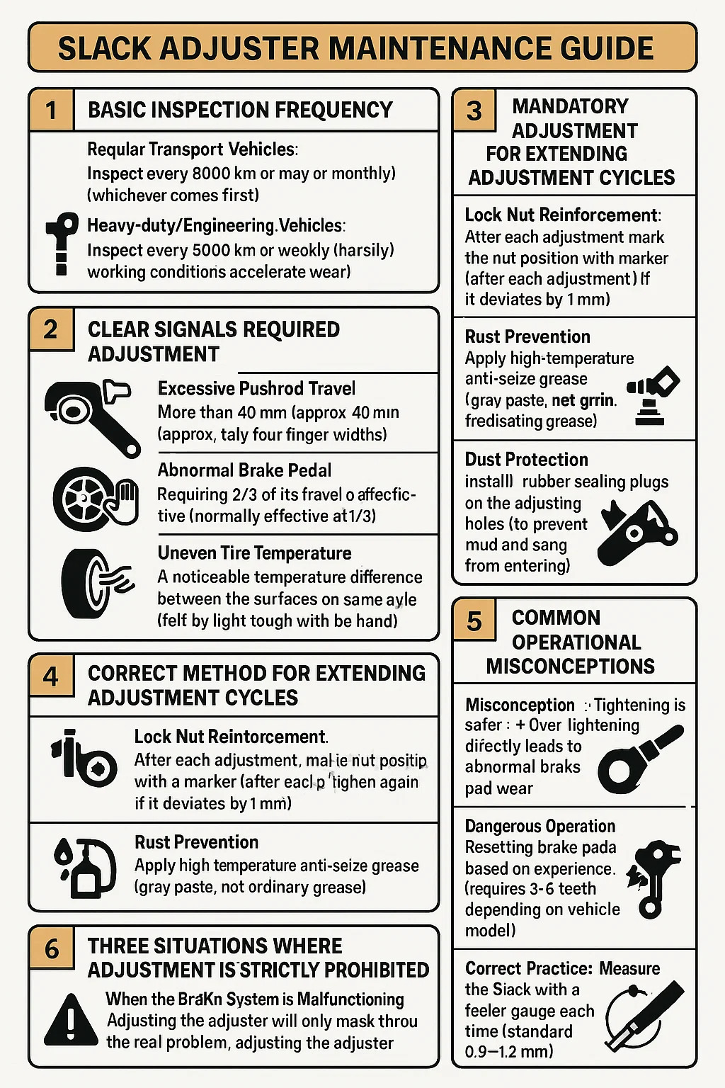 Când sistemul de frânare funcționează defectuos: Dacă există probleme, cum ar fi scurgeri de aer sau zgomot anormal, reglarea dispozitivului de reglare va masca doar problema reală.