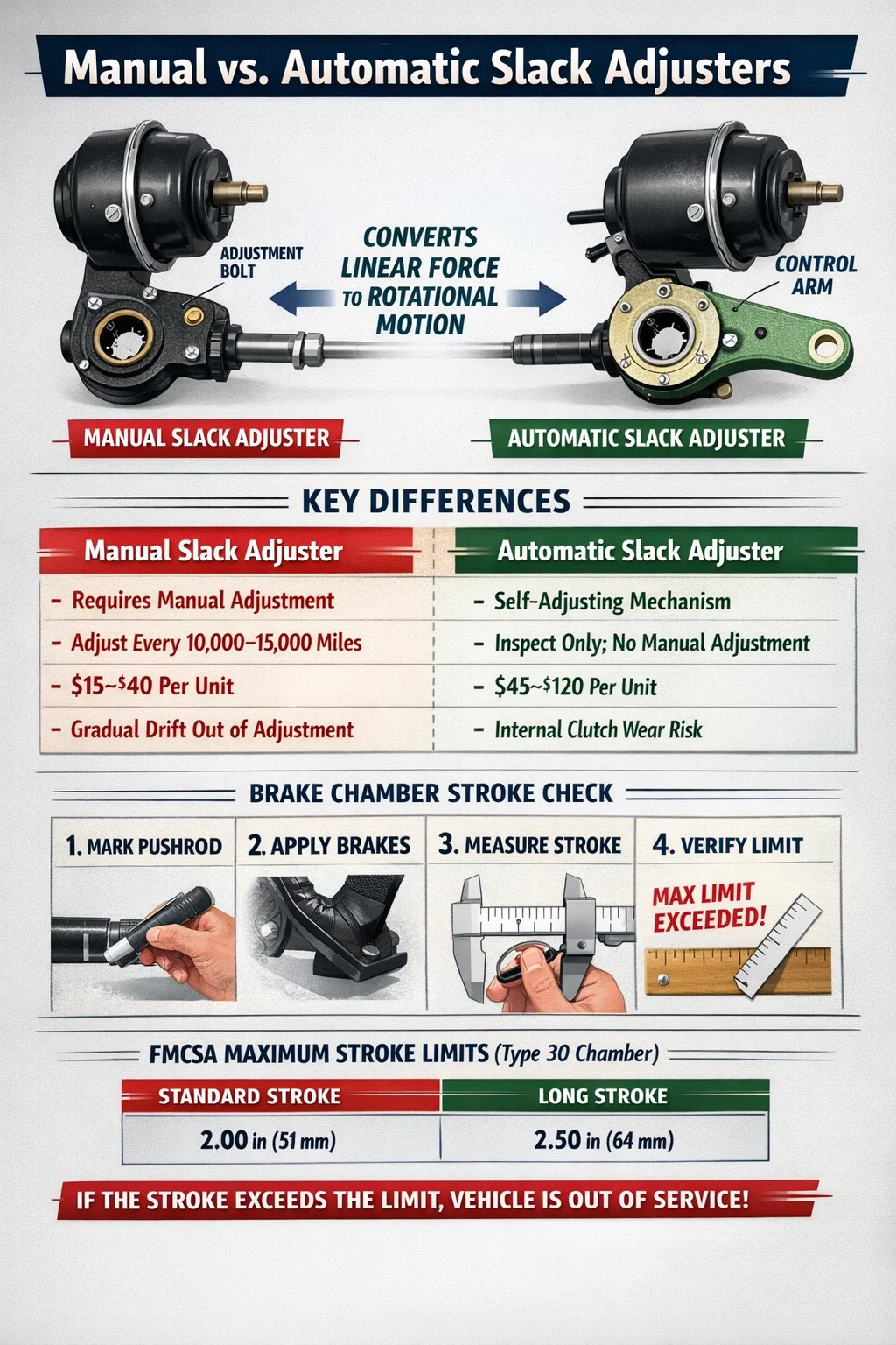Punctul critic pe care mulți șoferi îl înțeleg greșit: un ASA nu elimină necesitatea unei inspecții. Elimină necesitatea ajustării manuale de rutină. Dacă un ASA se reajustează în mod constant și tot nu poate menține cursa în limite, acesta este un simptom al unei căptușeli uzate, al unei bucșe de arbore cu came gripat, al unui tambur de frână crăpat sau al unui dispozitiv de reglare defect - nu este un semn că tehnicianul trebuie pur și simplu să rotească din nou șurubul de reglare.