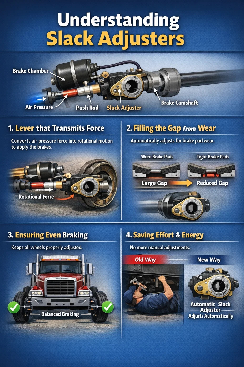 Reglaje slăbite sunt ca un „translator” și „manager automat” în sistemul de frânare al camioanelor și autobuzelor mari. Sunt situate între camera de frână și arborele de frână.